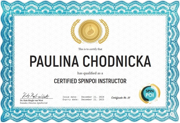 Współzałożycielka  Odskoczni – Paulina Chodnicka  została pierwszą certyfikowaną instruktorką Spin Poi w Polsce.